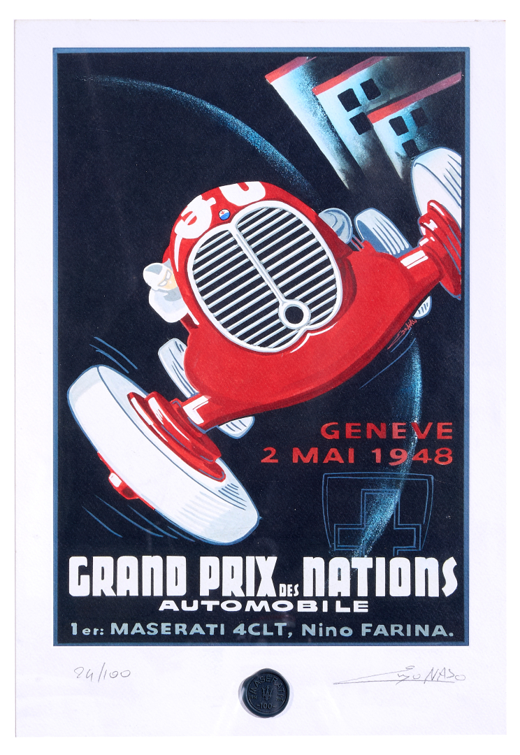 LITHOGRAPH “GENEVE 2 MAI 1948 - GRAND PRIX” 90s