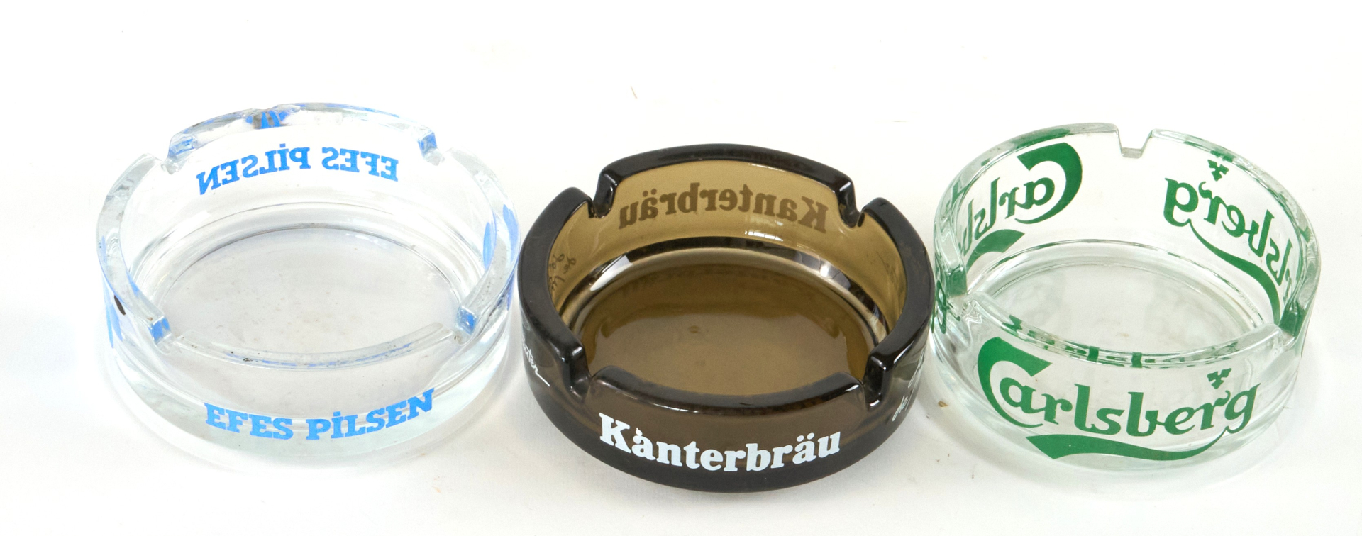 glass. Branded: Pilsen, Kanterbrau, and Carlsberg.
