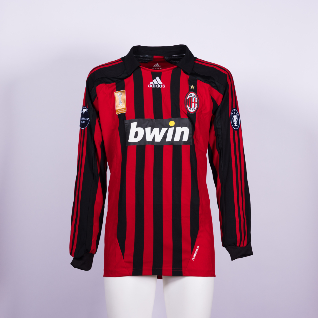 On the front: Bwin commercial sponsor and FIFA A.C. Milan Champions 2007 patch applied, technical sponsor and club crest surmounted by a star embroidered.