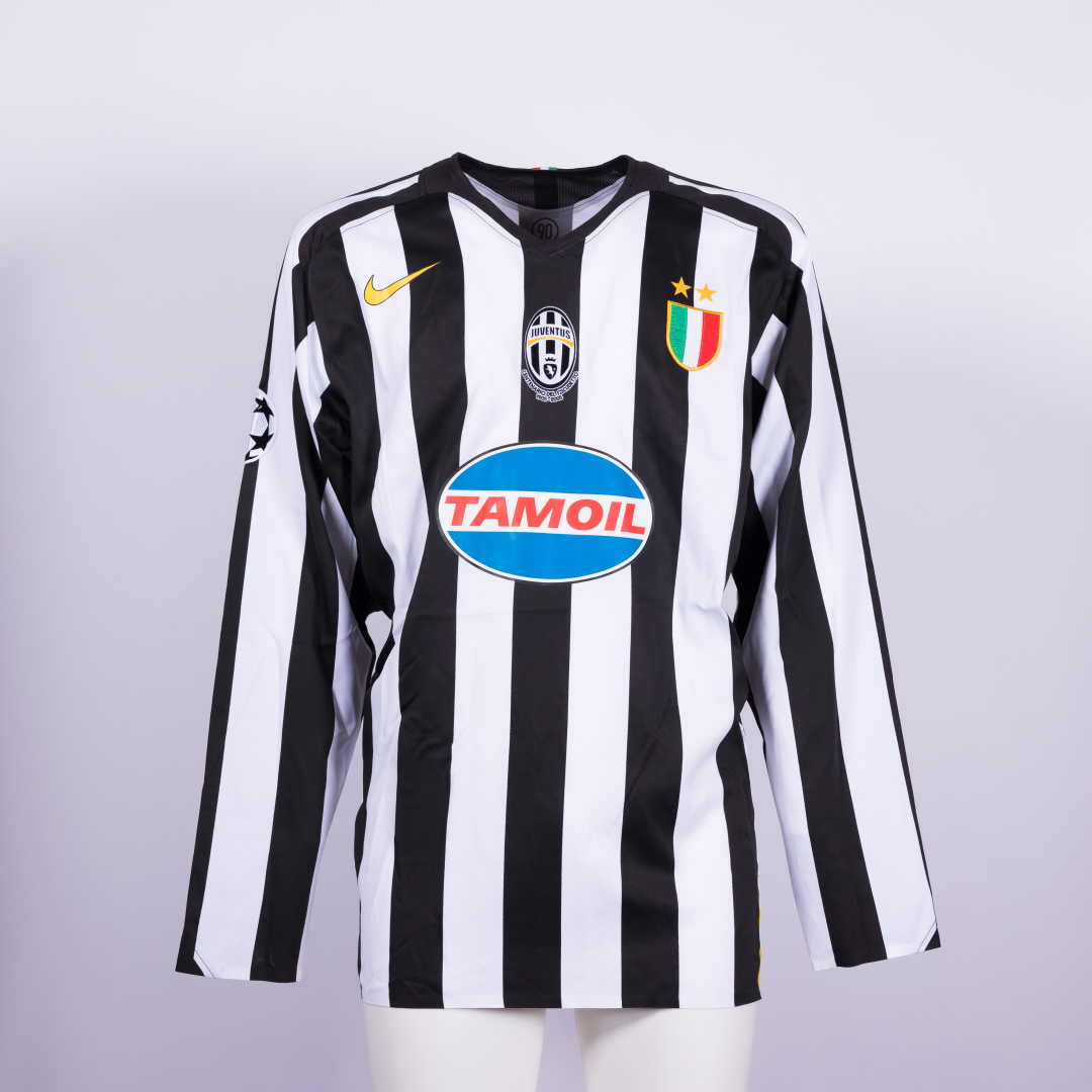 On the front: Tamoil commercial sponsor, technical sponsor and two gold stars applied, three-dimensional club crest with the inscription Centenario del primo scudetto 1905-2005 (Centenary of the first league title 1905-2005) and tricolour league title sewn on.