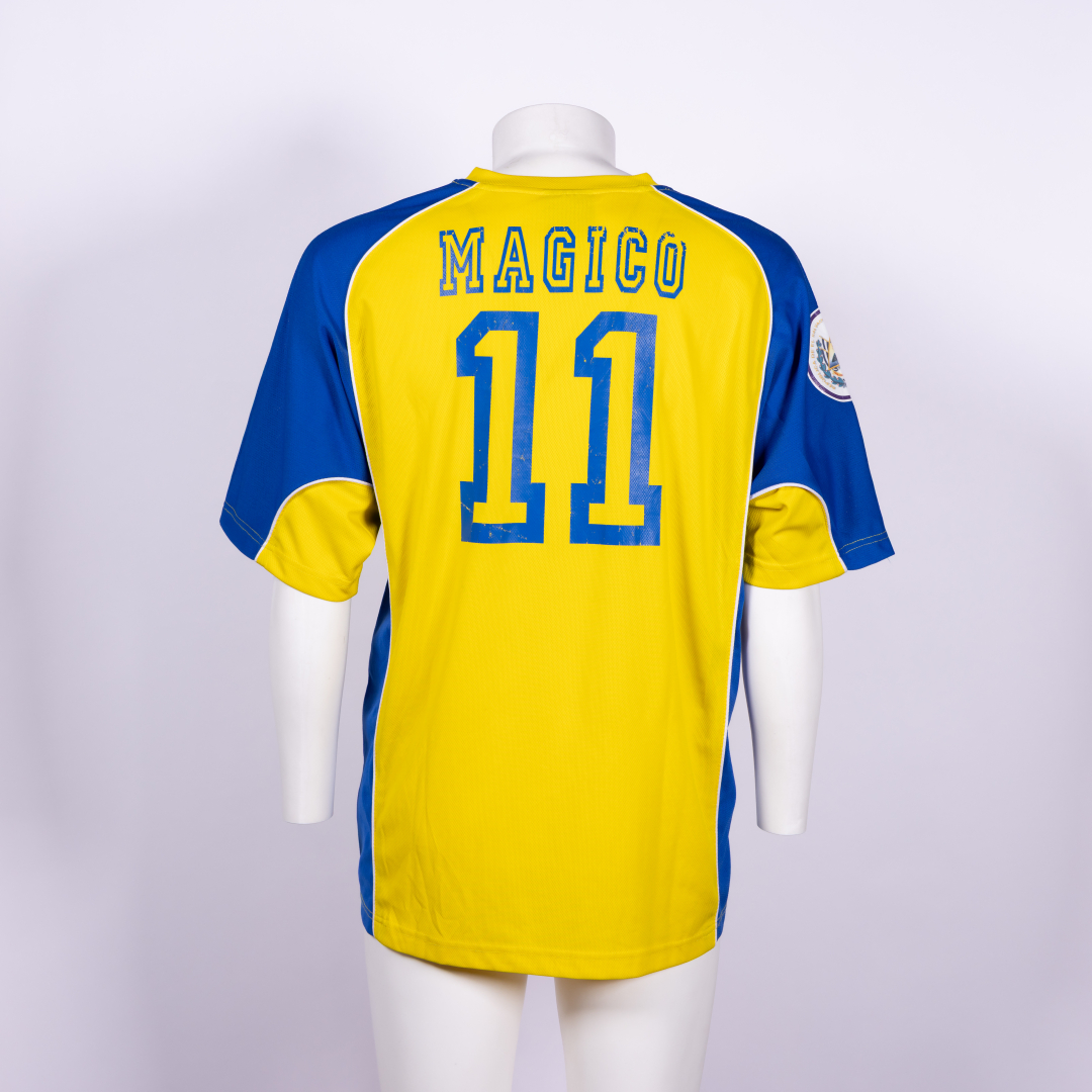 On the front: embroidered technical sponsor and club crest with patch: ‘28 de agosto de 2004/Homenaje a Magico Gonzalez’ applied.