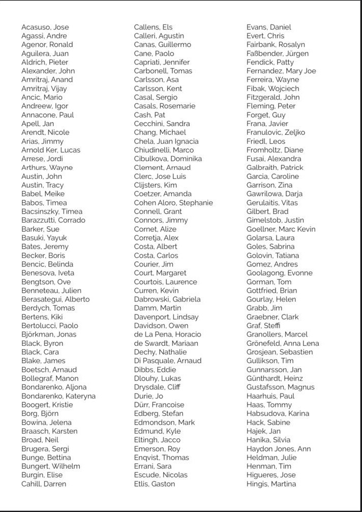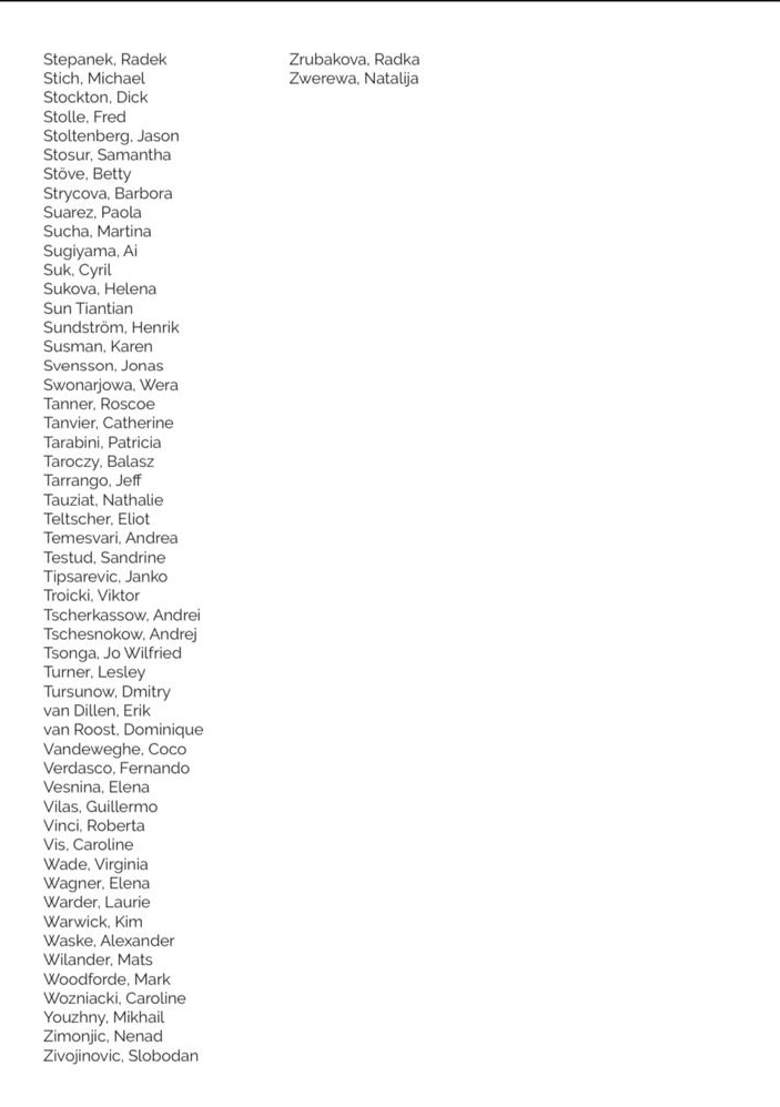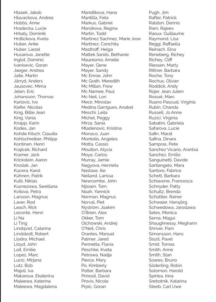 Collection of autographs from tennis players, listed in alphabetical order, partly on paper cards and partly on documents arranged in seven large files.
