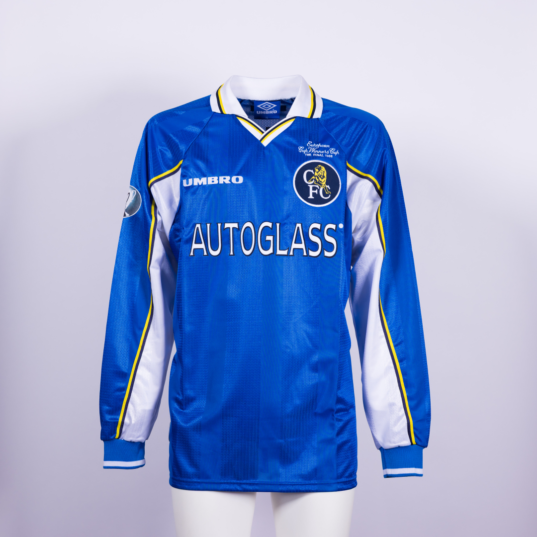 On the front: three-dimensional flocked Autoglass commercial sponsor, technical sponsor and club crest surmounted by the embroidered words ‘European Cup Winners Cup The Final 1998’.