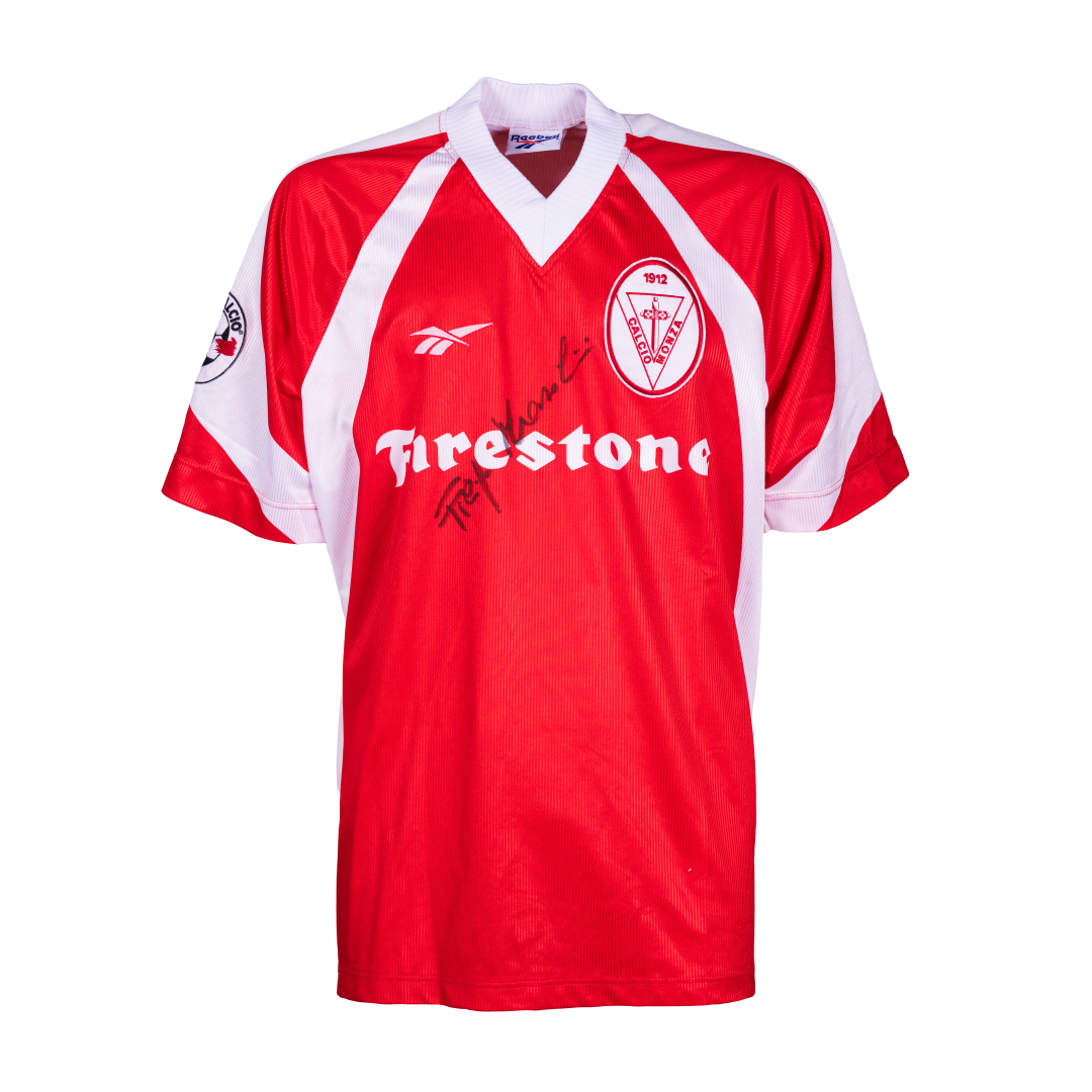 On the front: Firestone commercial sponsor in sublimation print, three-dimensional technical sponsor and club crest applied.