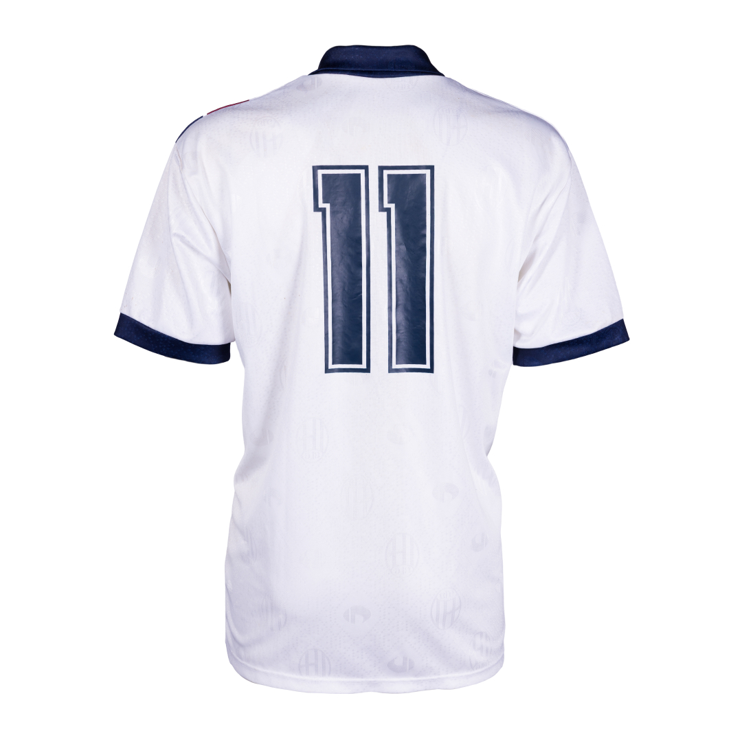 On the front: flocked Synudine commercial sponsor, technical sponsor and club crest in sublimation.