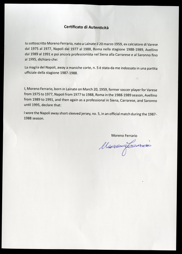 Moreno Ferrario – S.S.C. Napoli - 1987-1988 Season