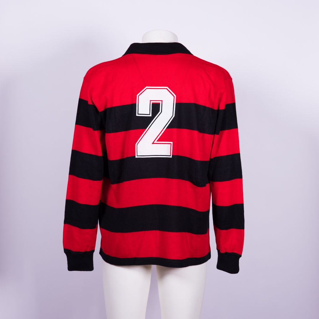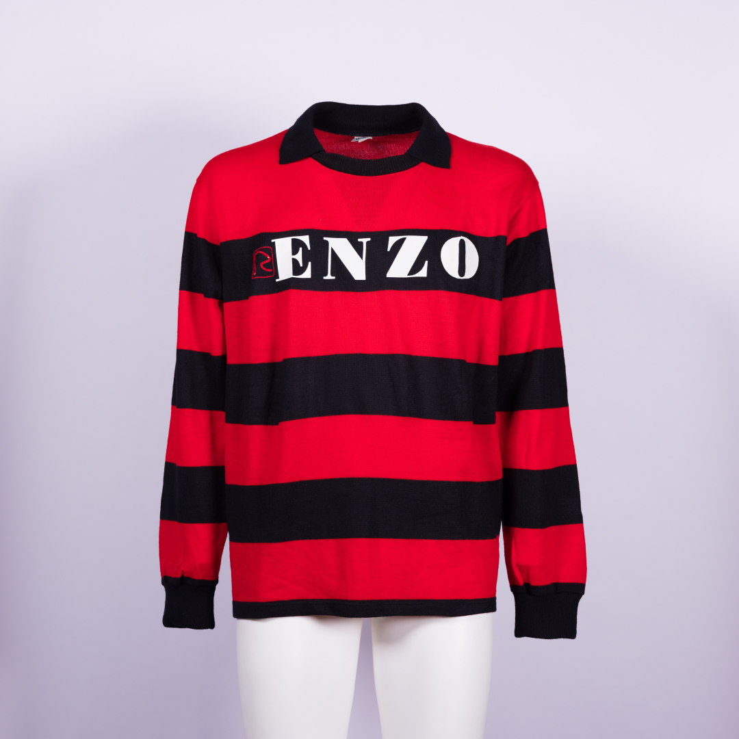 Jersey attributed to a friendly match for the 50th birthday of Enzo Jannacci, a well-known Milan fan and composer of the anthem “Mi-Mi-la-lan!”, official from 1984 to 1988.