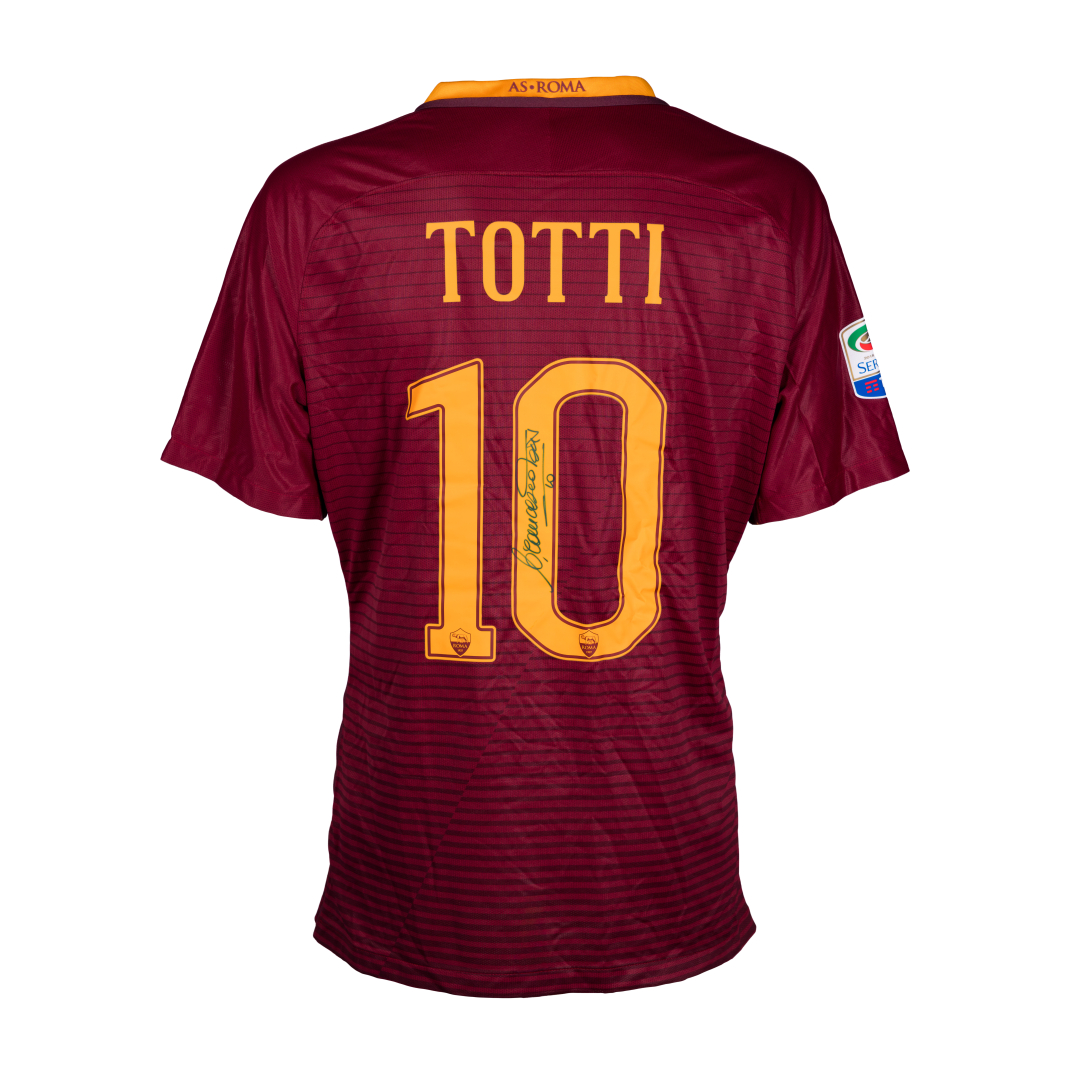 On the back: name and number 10 applied and Francesco Totti's full autograph.