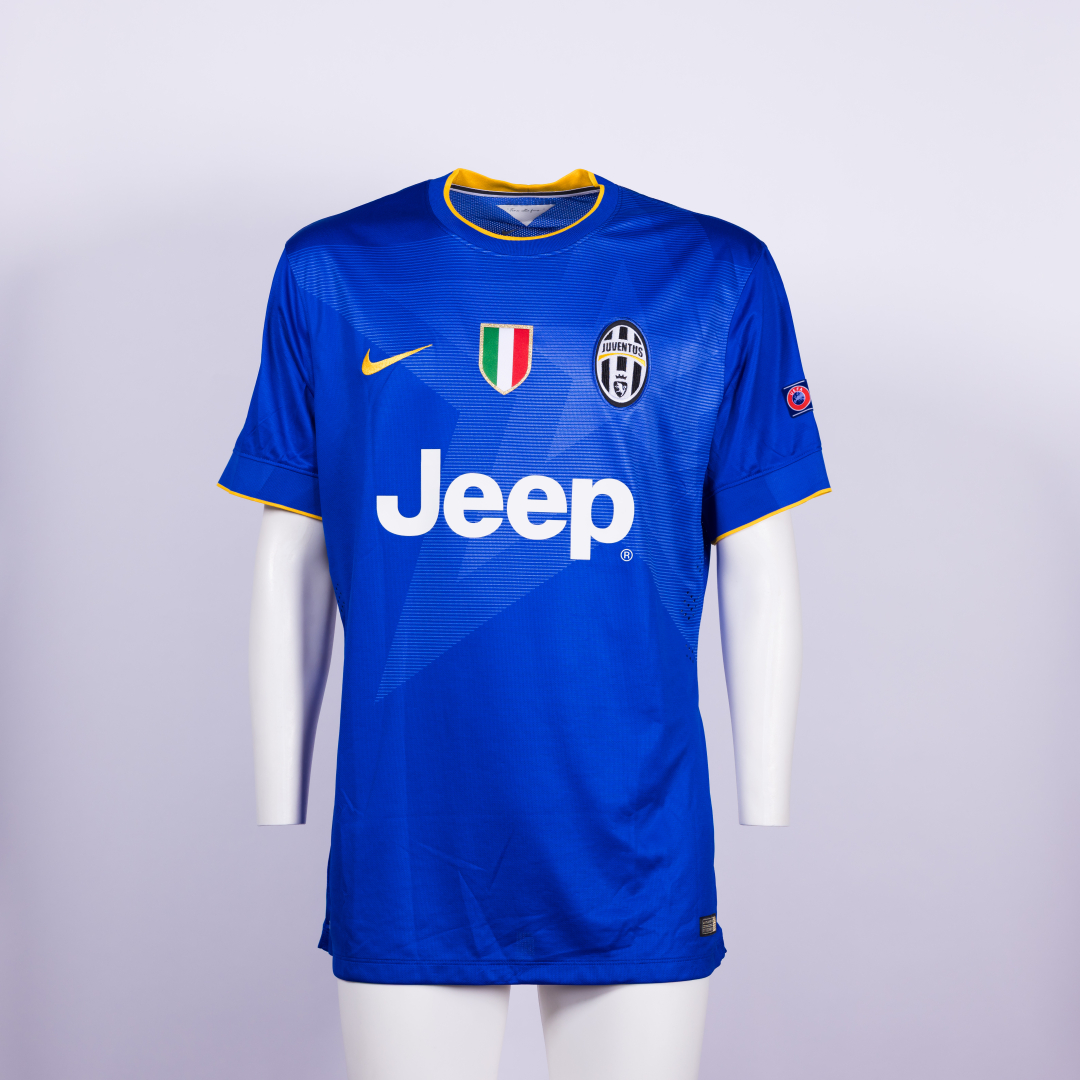 On the front: Jeep commercial sponsor and tricolor shield applied, club crest and technical sponsor embroidered.