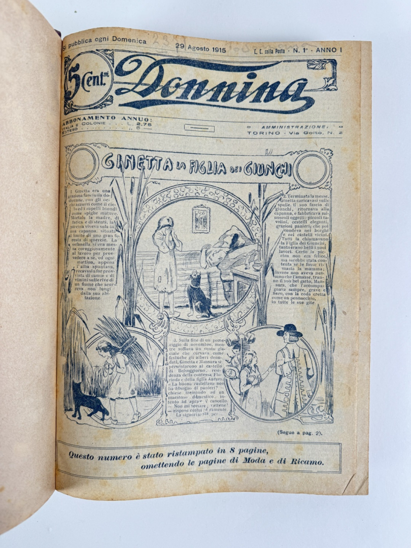 Lotto composto da due volumi rilegati contenenti i primi 104 fascicoli di Donnina. In buone condizioni.