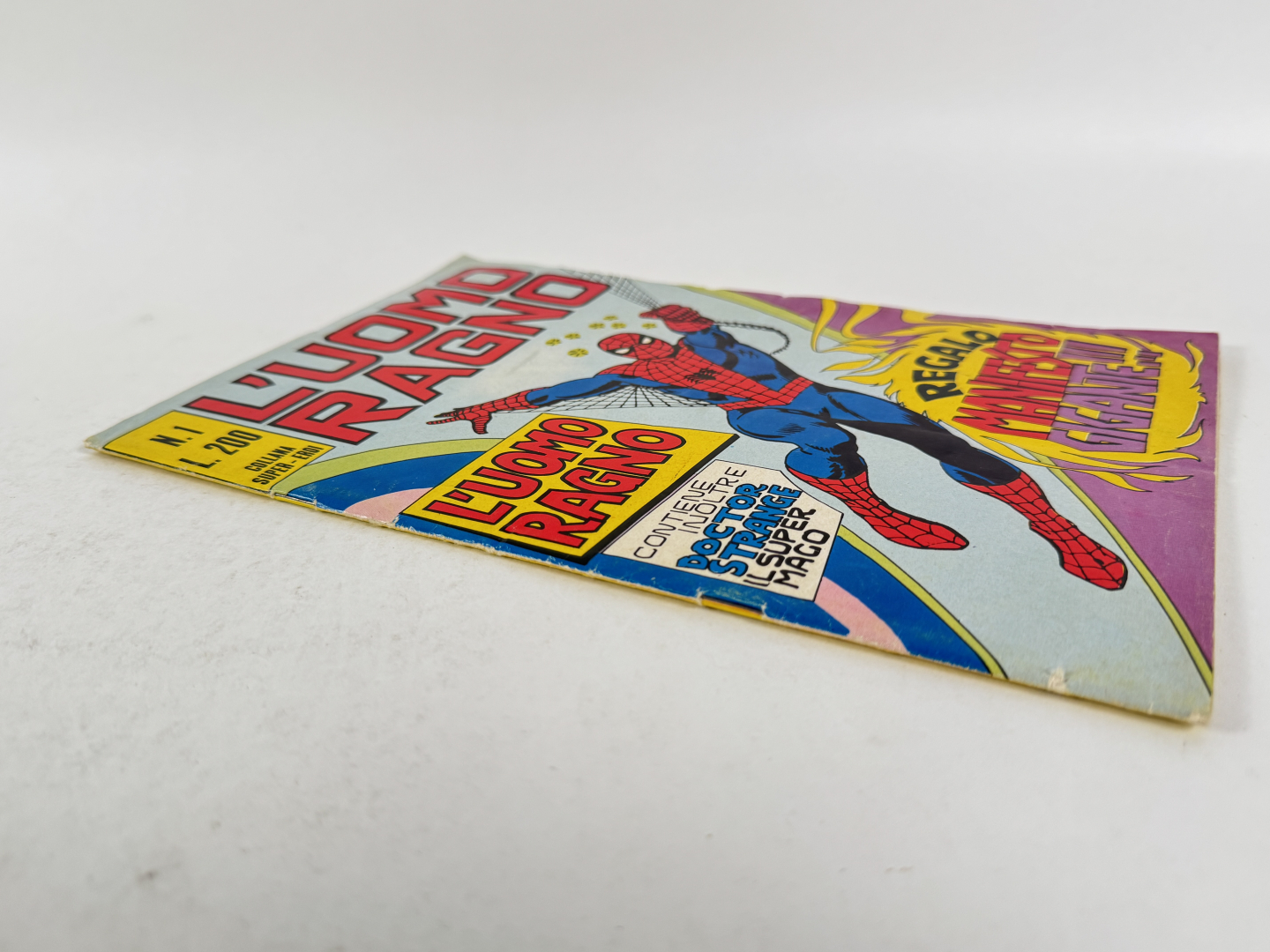 Primo albo della serie edita dalla Corno. All'interno la prima storia di Spider-man realizzata dal duo Lee / Ditko pubblicata in America su Amazing Fantasy #15. Albo in condizioni molto buone, lievi abrasioni ai margini, senza manifesto.