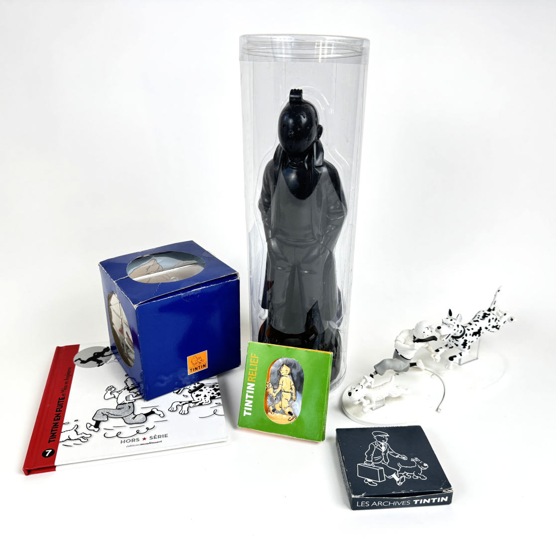 Lotto composto da cinque statuette in resina e un albo a fumetti. In buone condizioni.