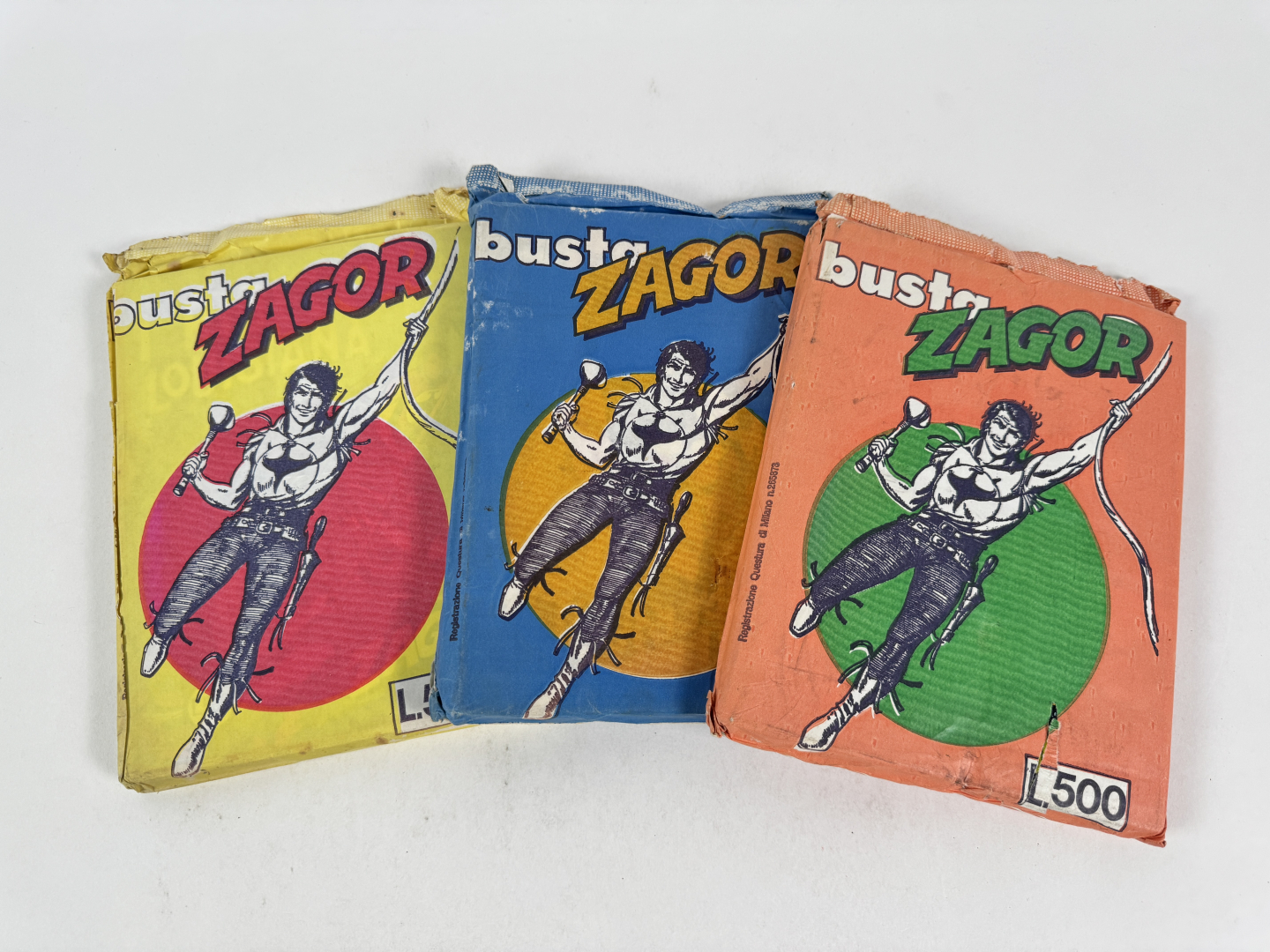 Lotto composto da tre buste Zagor ancora chiuse. In condizioni molto buone. Le buste posso presentare dei piccoli strappi ma sono ancora sigillate.