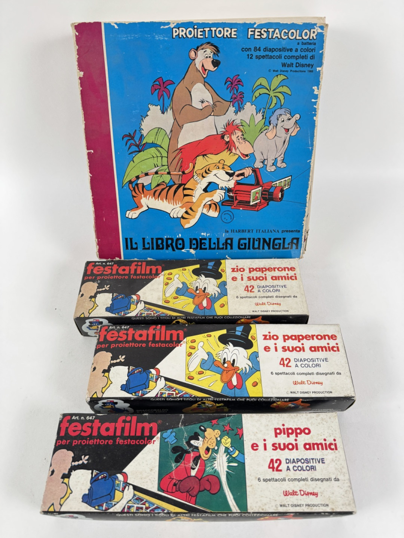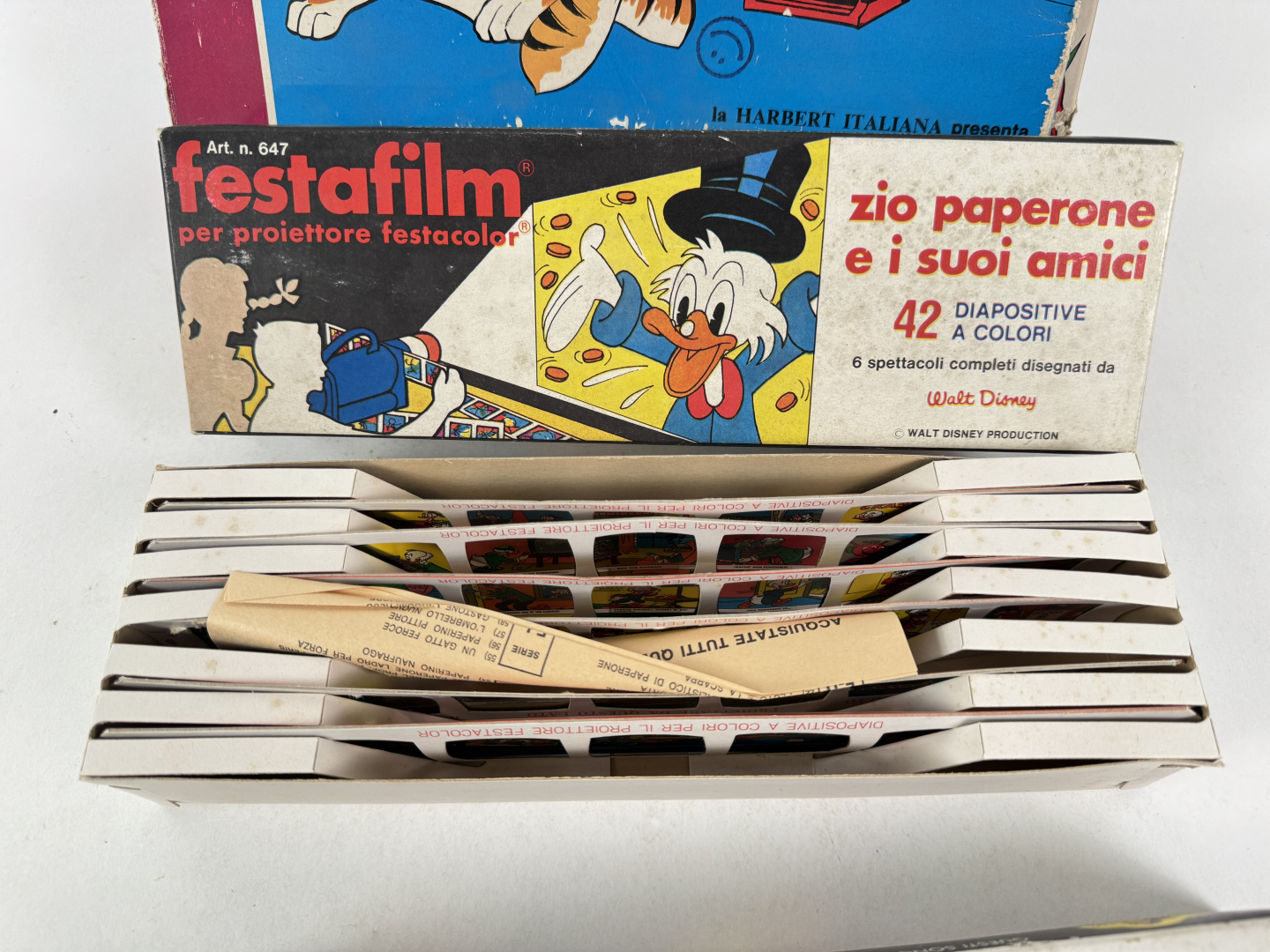 Lotto composto dal proiettore Festacolor in buone condizioni con scatola originale e da 3 scatole complete Festafilm in buone condizioni.