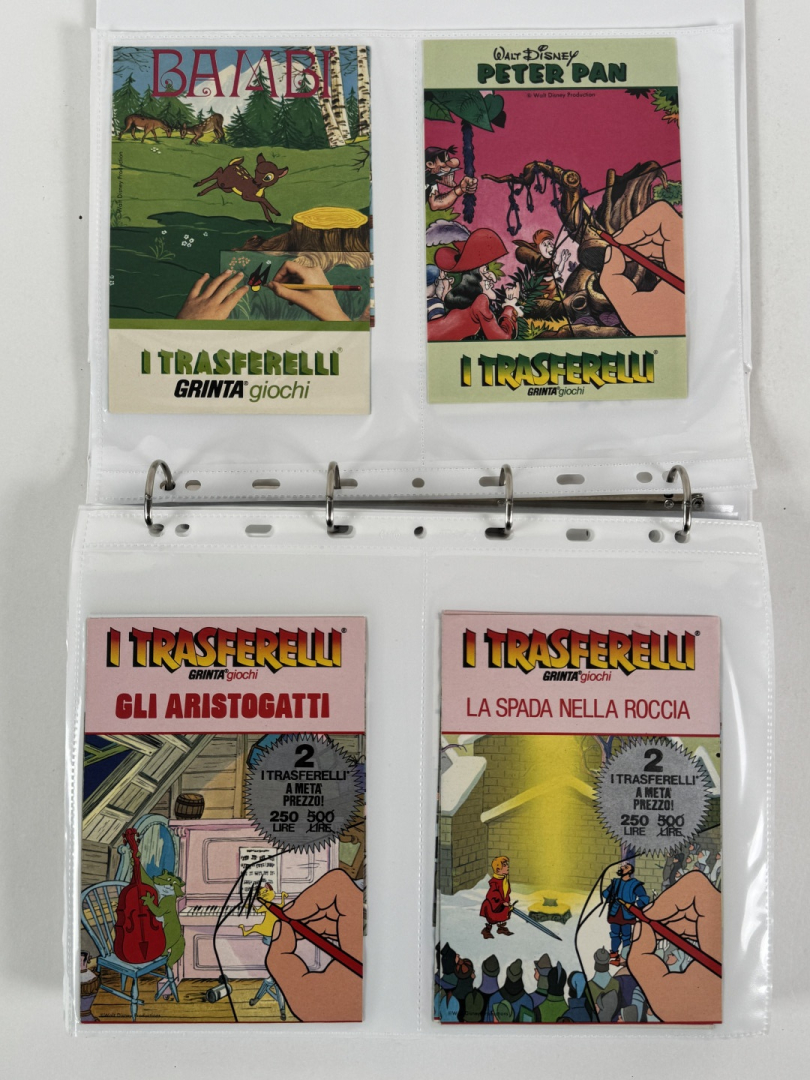 Lotto composto da 42 trasferelli Walt Disney. Grinta Giochi, Albo con trasferelli Disney, Trastoriello Mondadori Disney, Il Trasferone NN. 1/14. Come nuovi.