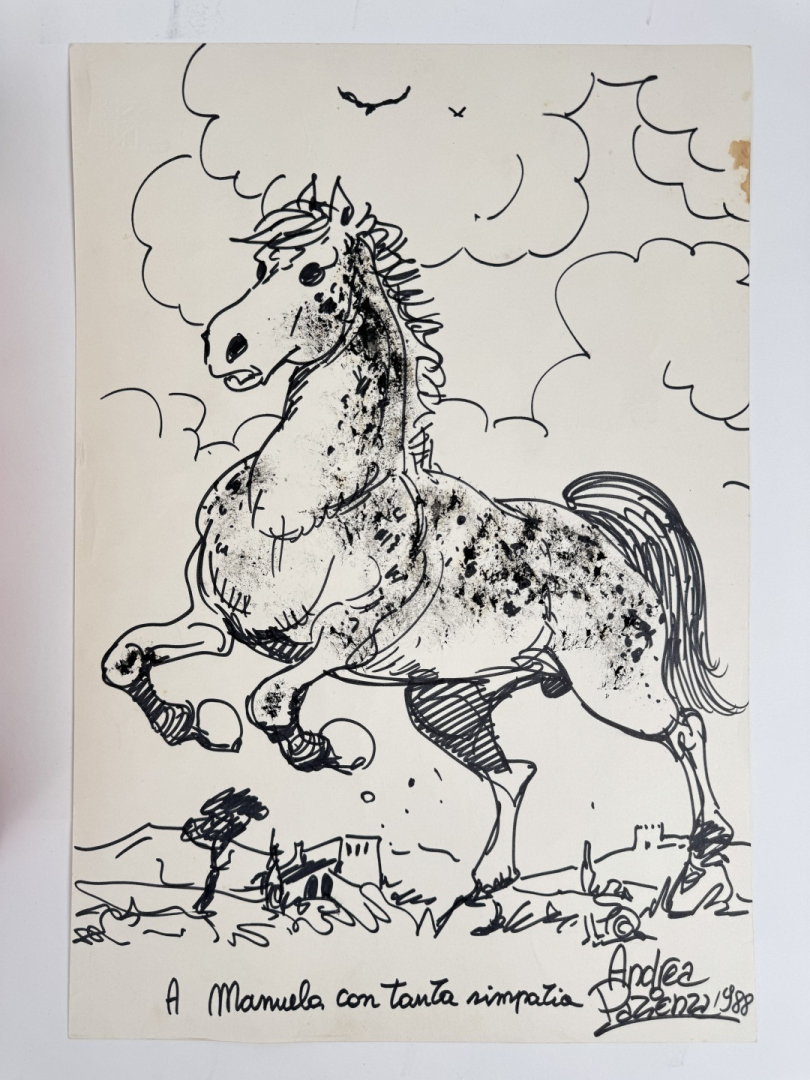 Illustrazione realizzata a matita e pennarello su cartoncino, firmata e datata.