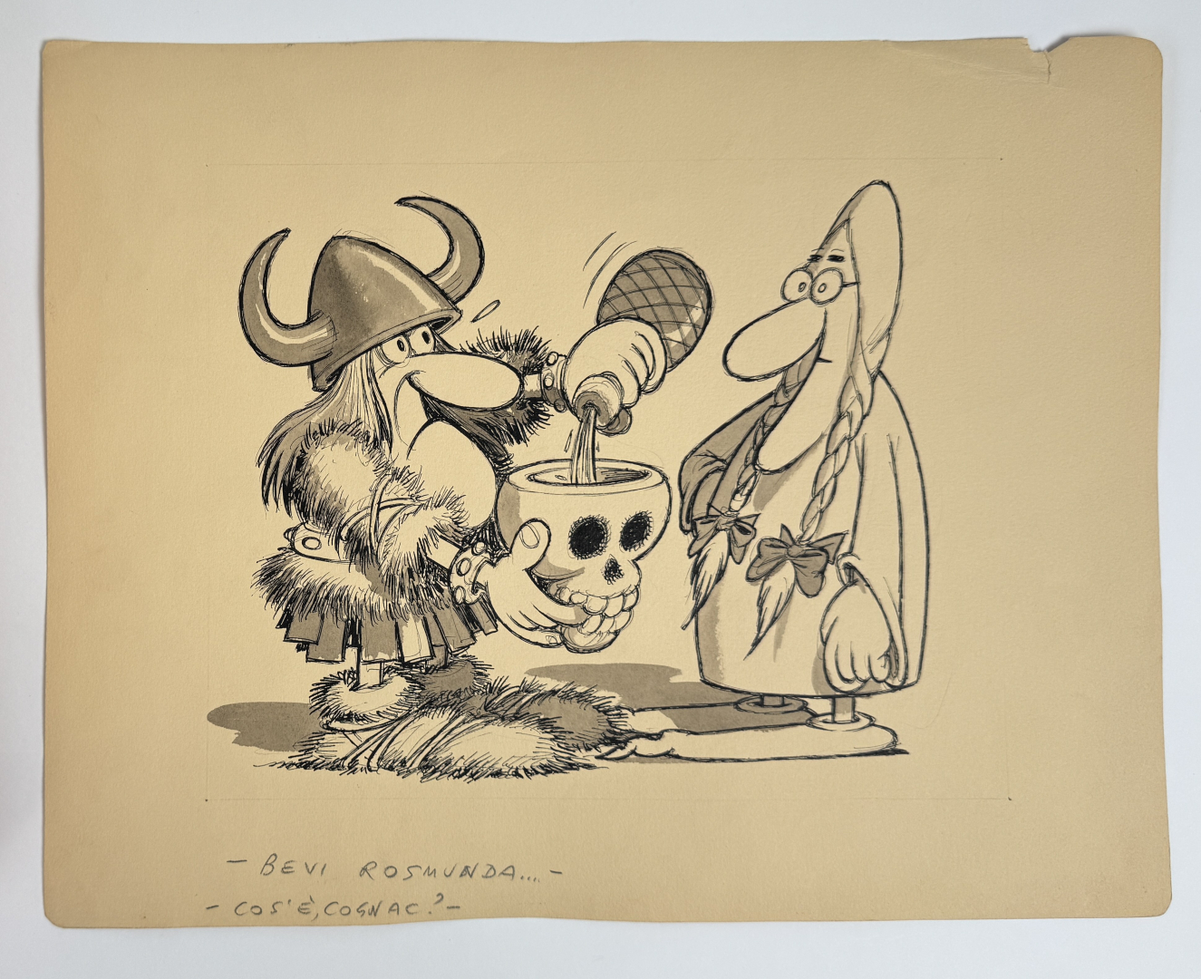 Illustrazione originale realizzata a matita, china e guazzo. Realizzata per un programma Rai. In buone condizioni.