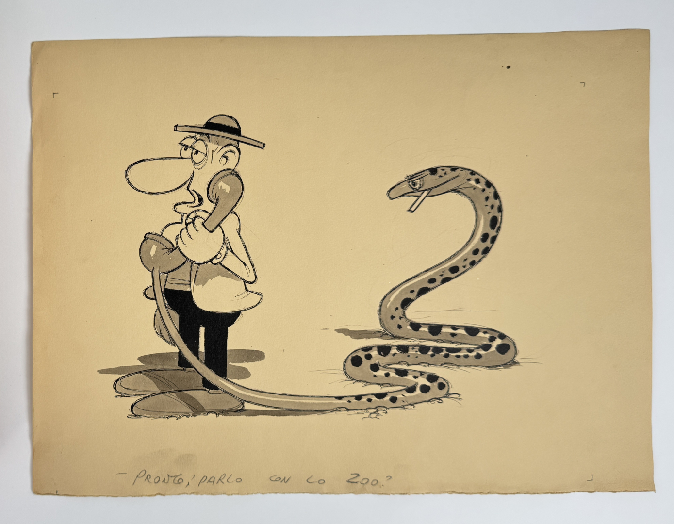 Illustrazione originale realizzata a matita, china e guazzo. Realizzata per un programma Rai. In buone condizioni.