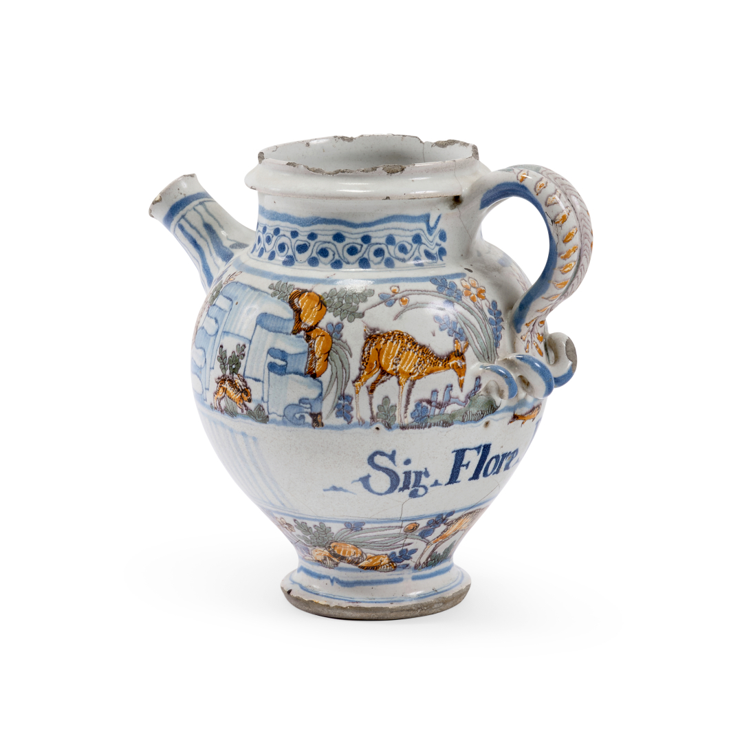 Pitcher Savona, Pescetto Manufacture, first half of the 18th Century