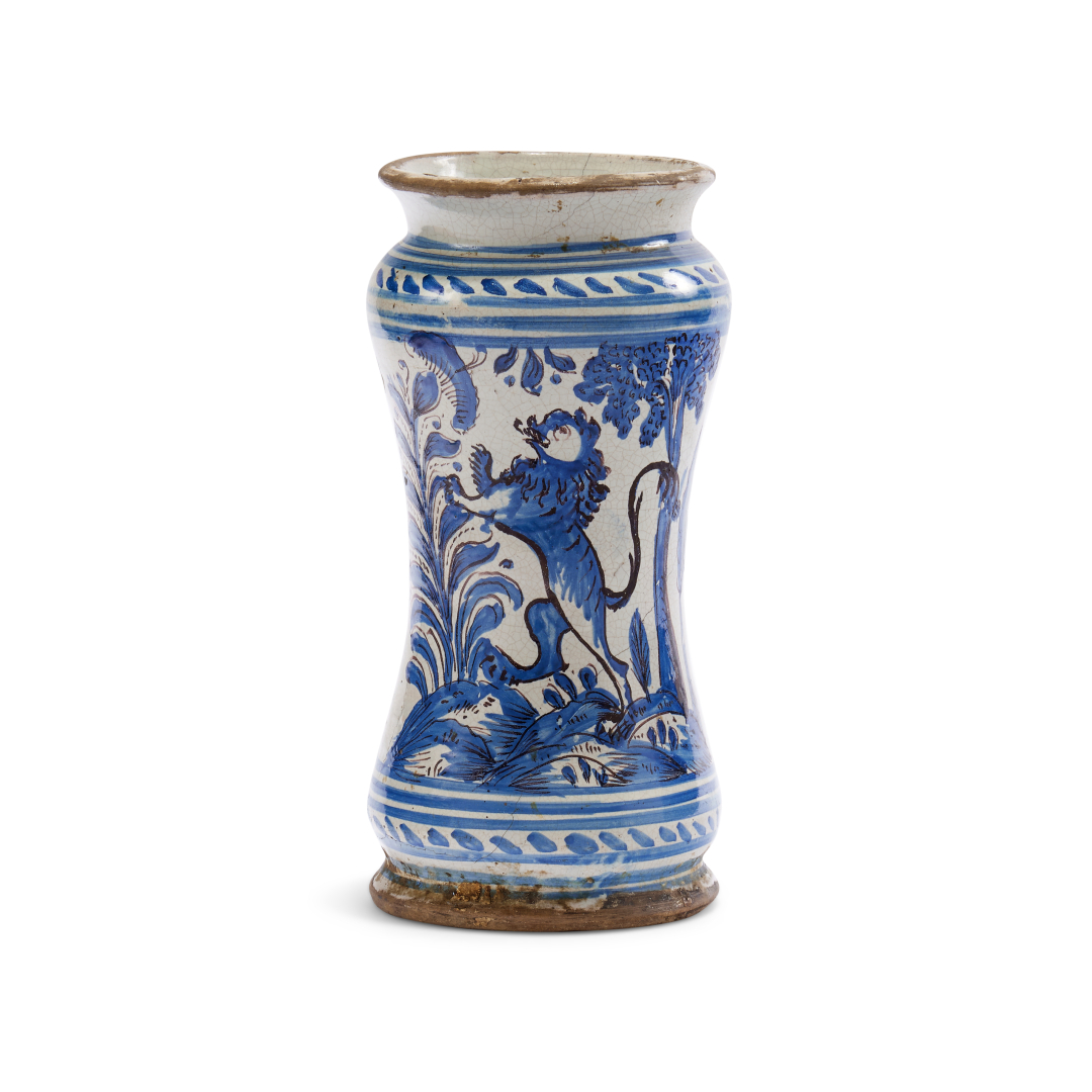 Majolica, blue enamel decoration by the 'master of the rampant lion'.