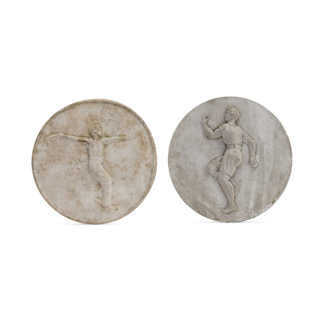 Group of two plaster roundels, one signed O. Piccione lower center recto.