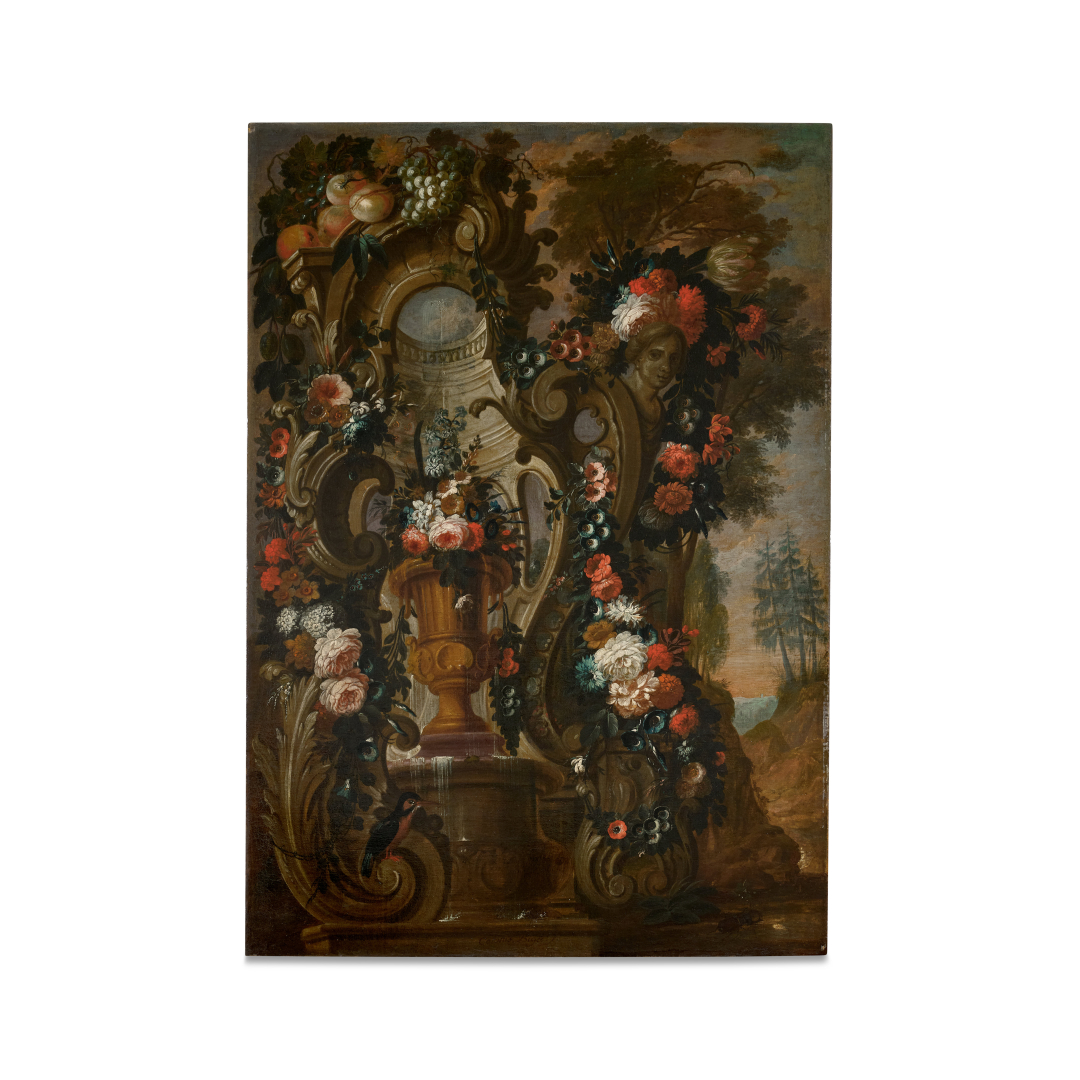 CHARLES BIGÉE 1750-1759 Still life with fruit, flowers and architectural element