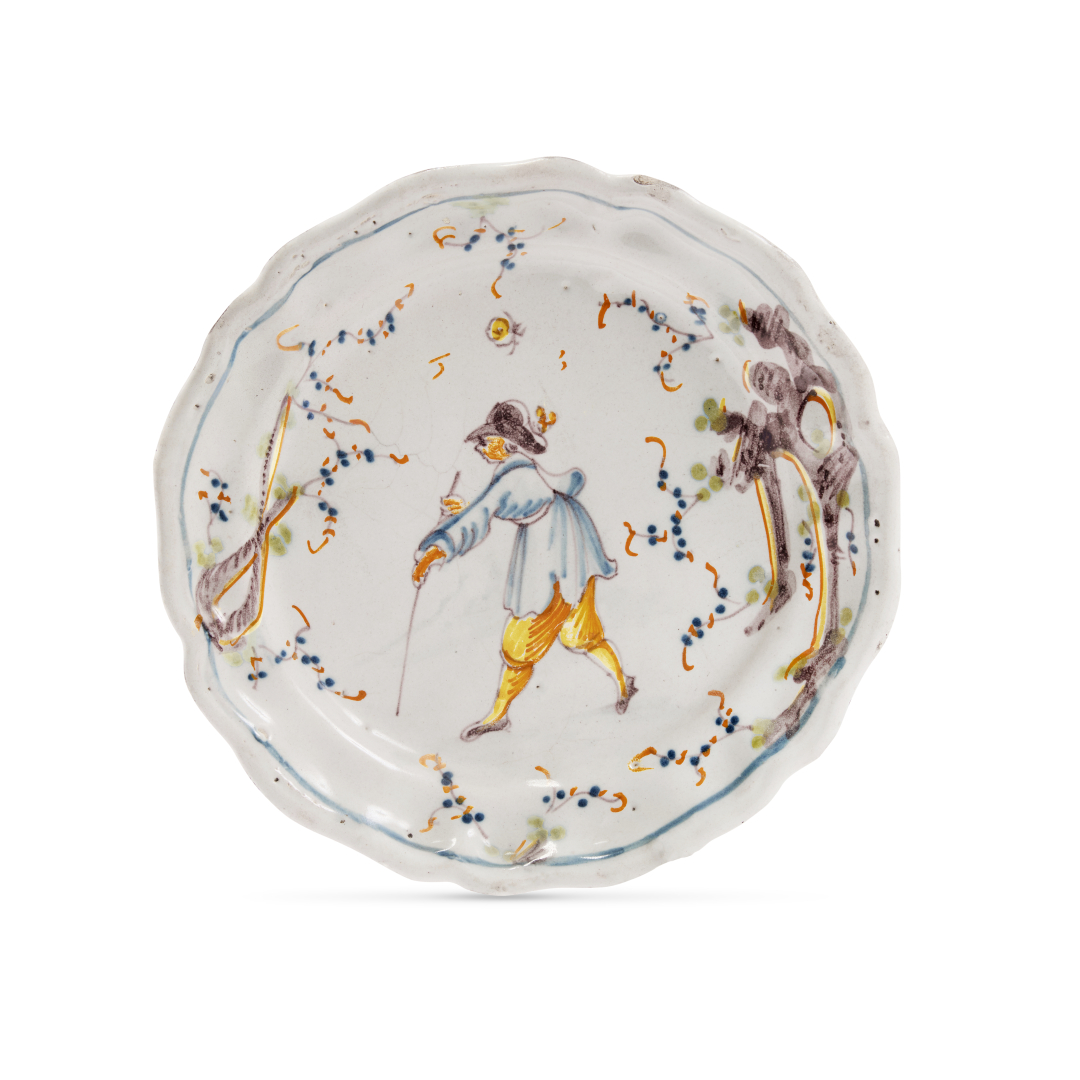 Majolica, polychrome Callot-style figures and ruins decoration.