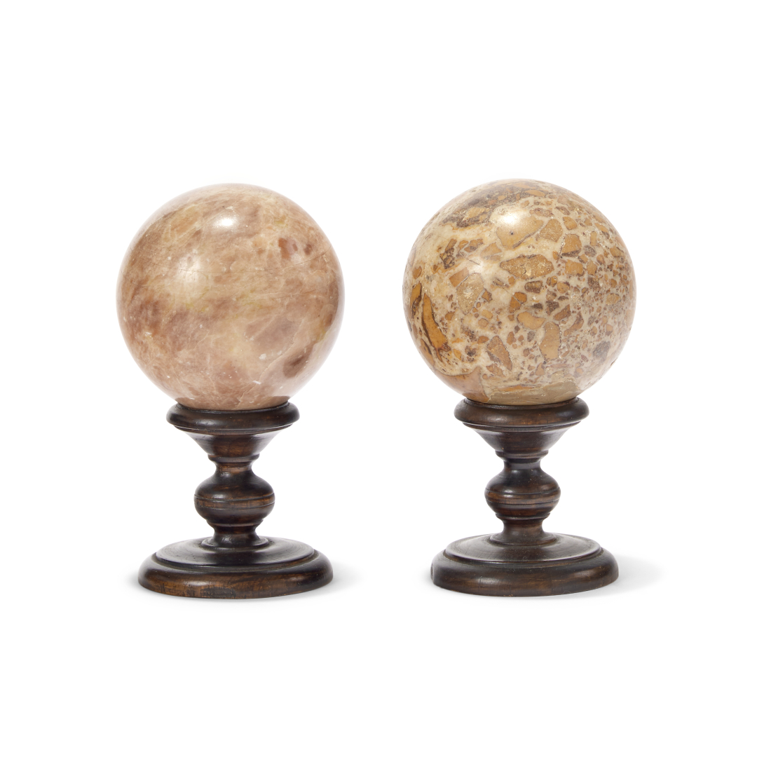 Marble, on carved wood bases with baluster shaft and circular foot.