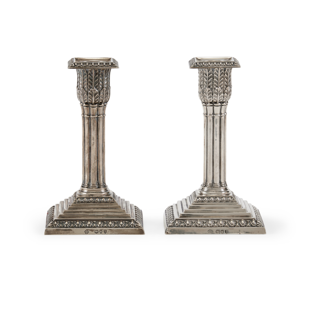 Pair of silver trumeau candlesticks William Hutton & Sons Ltd, Londra, 1894-1895