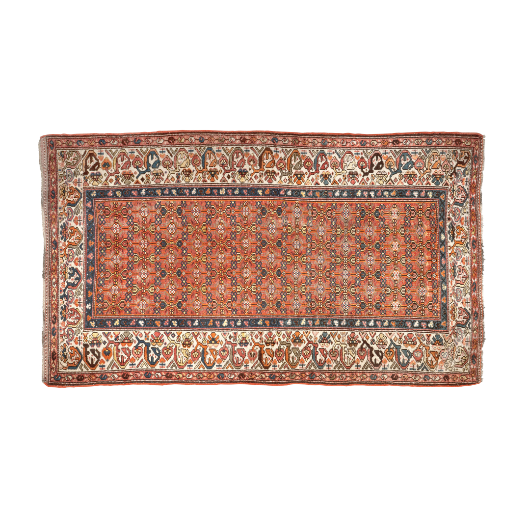 Polychrome decoration with geometric motifs on orange ground.