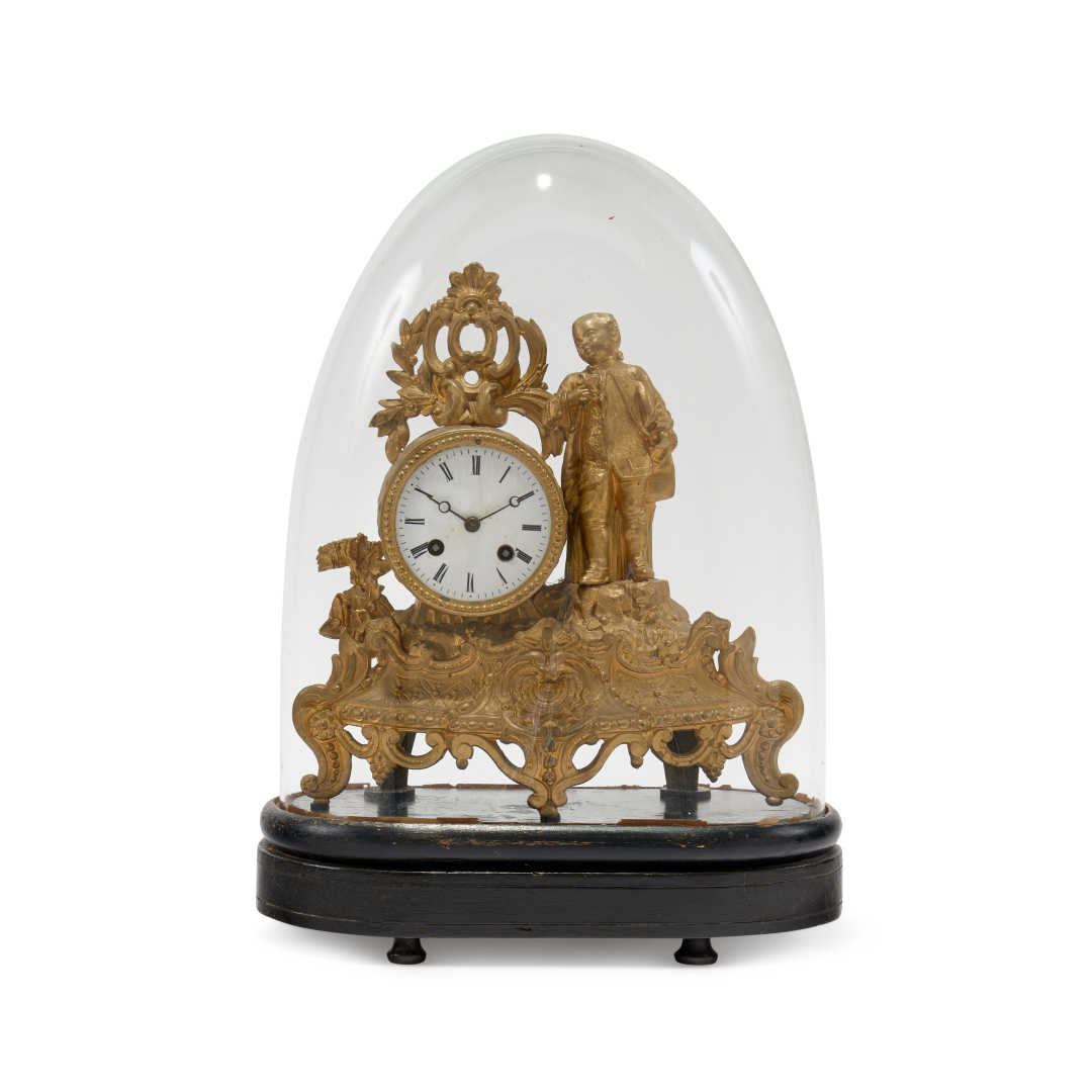 White enamel dial with painted Roman numerals, anchor escapement movement with spring suspension, striking the hours and half-hours on a bell.