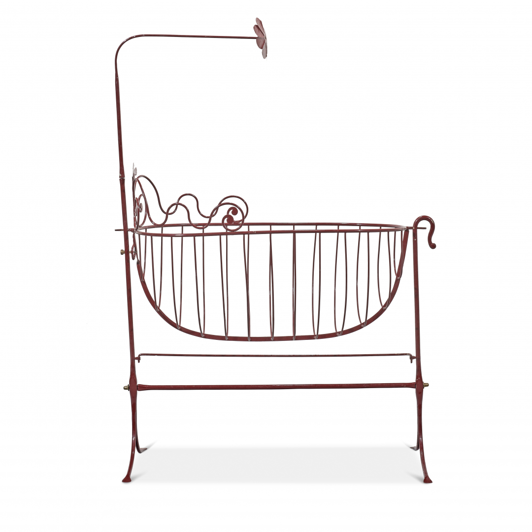 Burgundy painted wrought iron, shaped, with curtain rod ending in a flower.