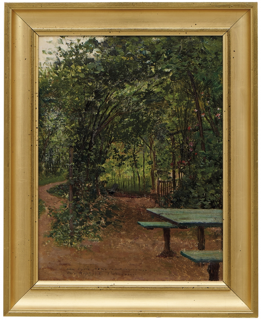 Oil on canvas, signed and dedicated 'alla signora Maria Caputo Sommaruga Parigi 18 agosto 903' lower left recto, on the frame's reverse author's credit blind stamp.