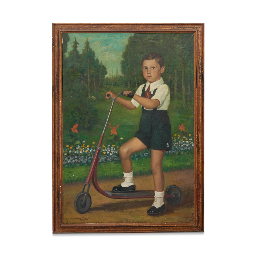 SCUOLA DEL XX SECOLO Portrait of a child on a kick scooter 1944