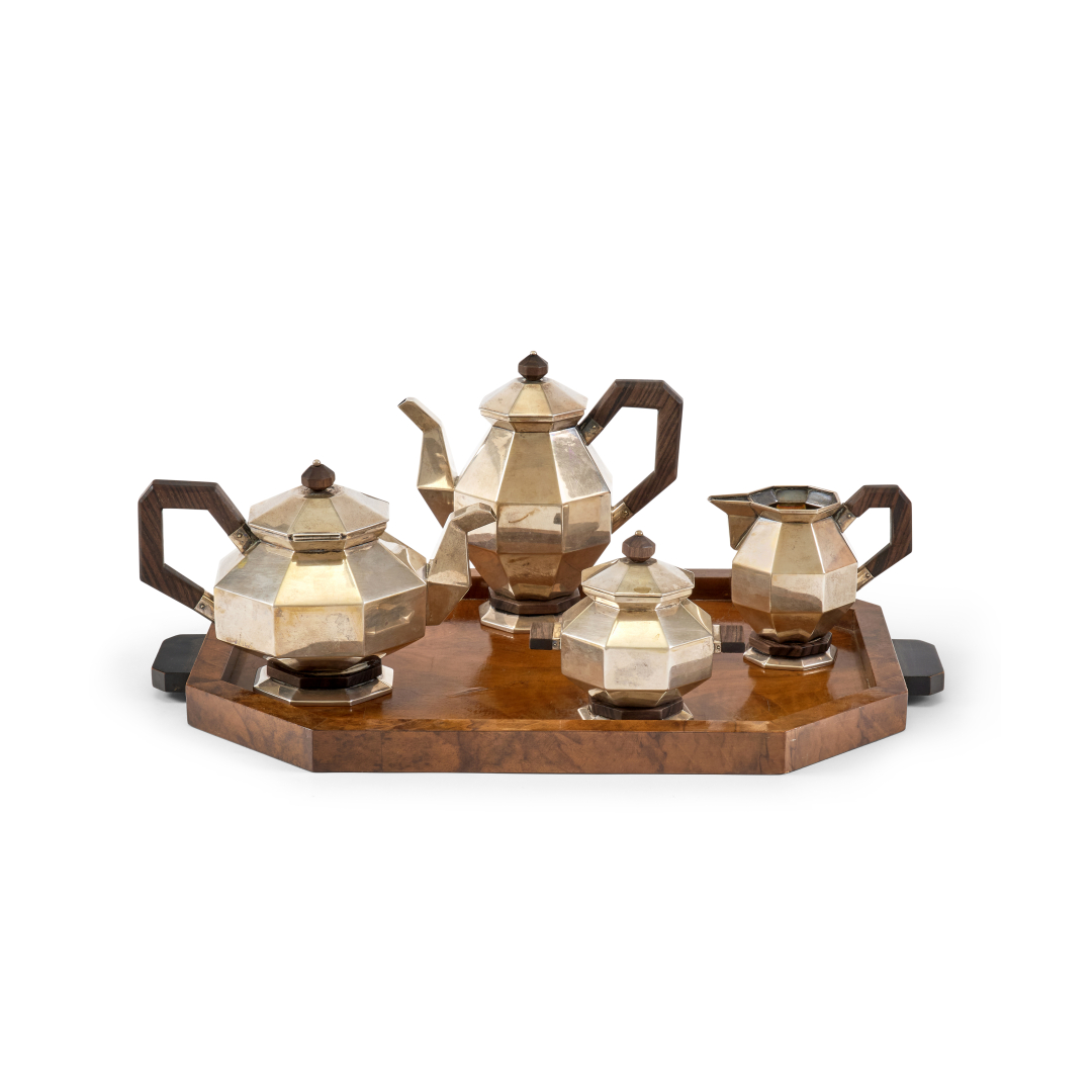 Silver and wood tea and coffee set Saracchi, Milan, early 20th Century