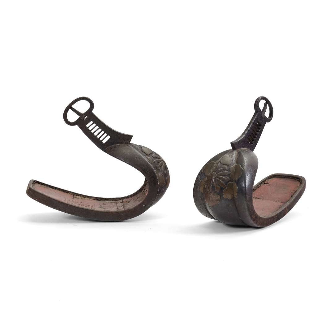 Bronze, the front with a raised floral coat of arms (kamon), the inside with red lacquer.