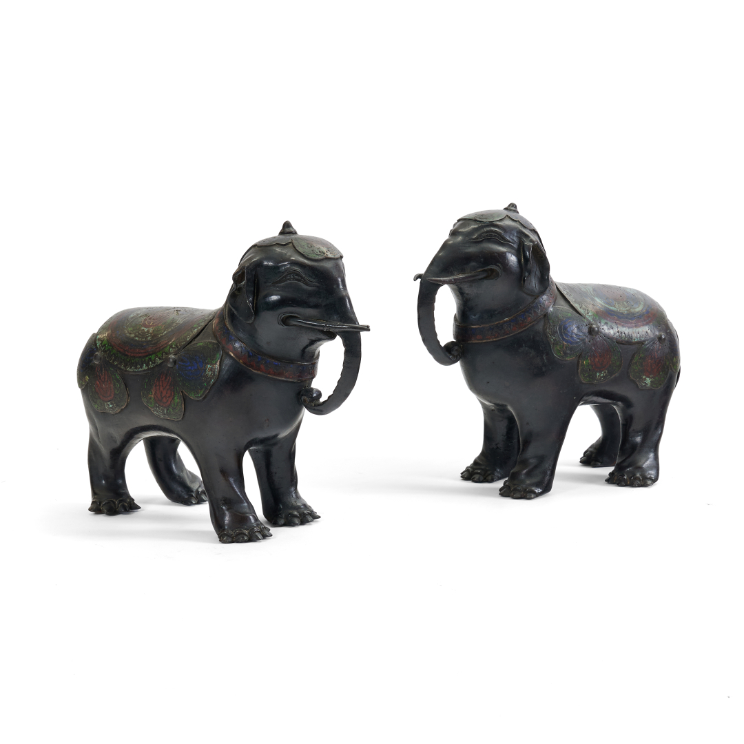 Bronze, polychrome cloisonné enamelled harness, apocryphal Xuande mark to the centre of the belly of both.