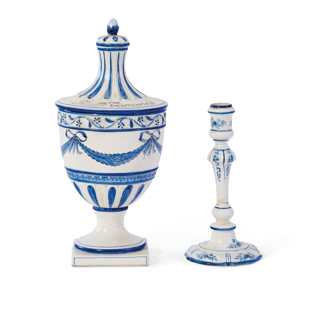 Earthenware with neoclassical decoration in blue.