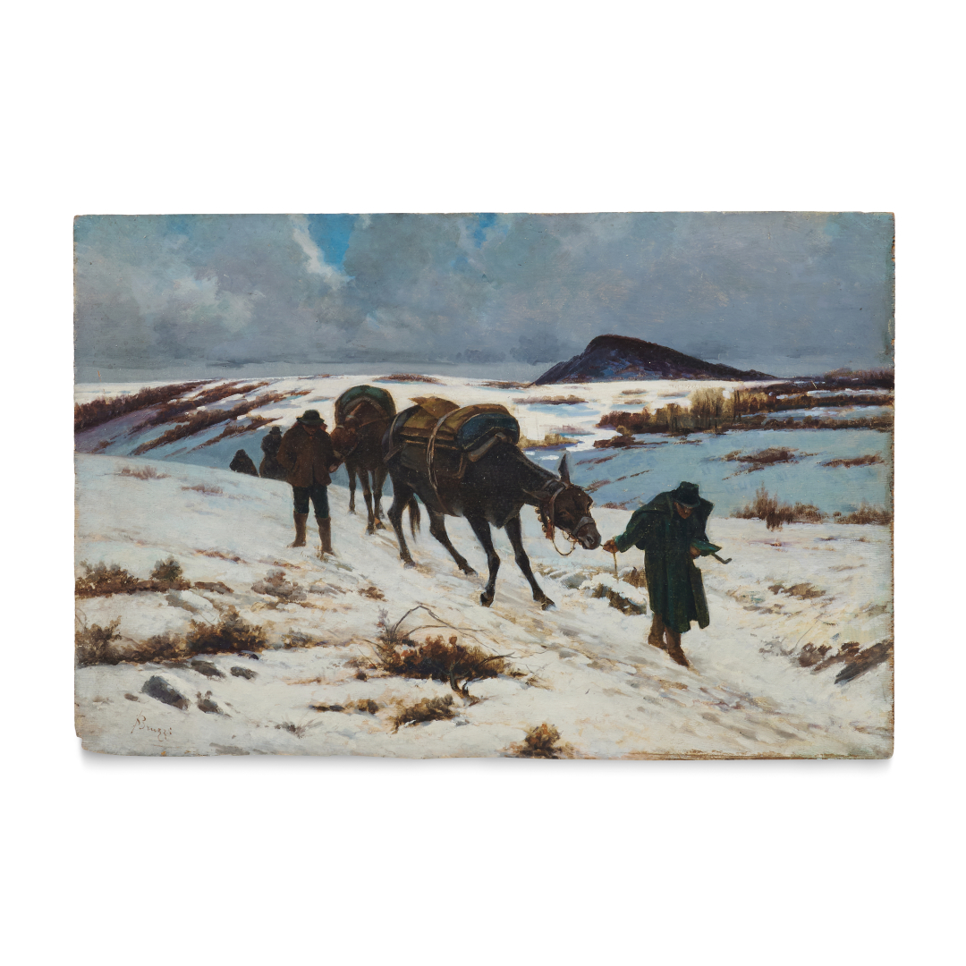STEFANO BRUZZI 1835-1911 Con i muli nella neve