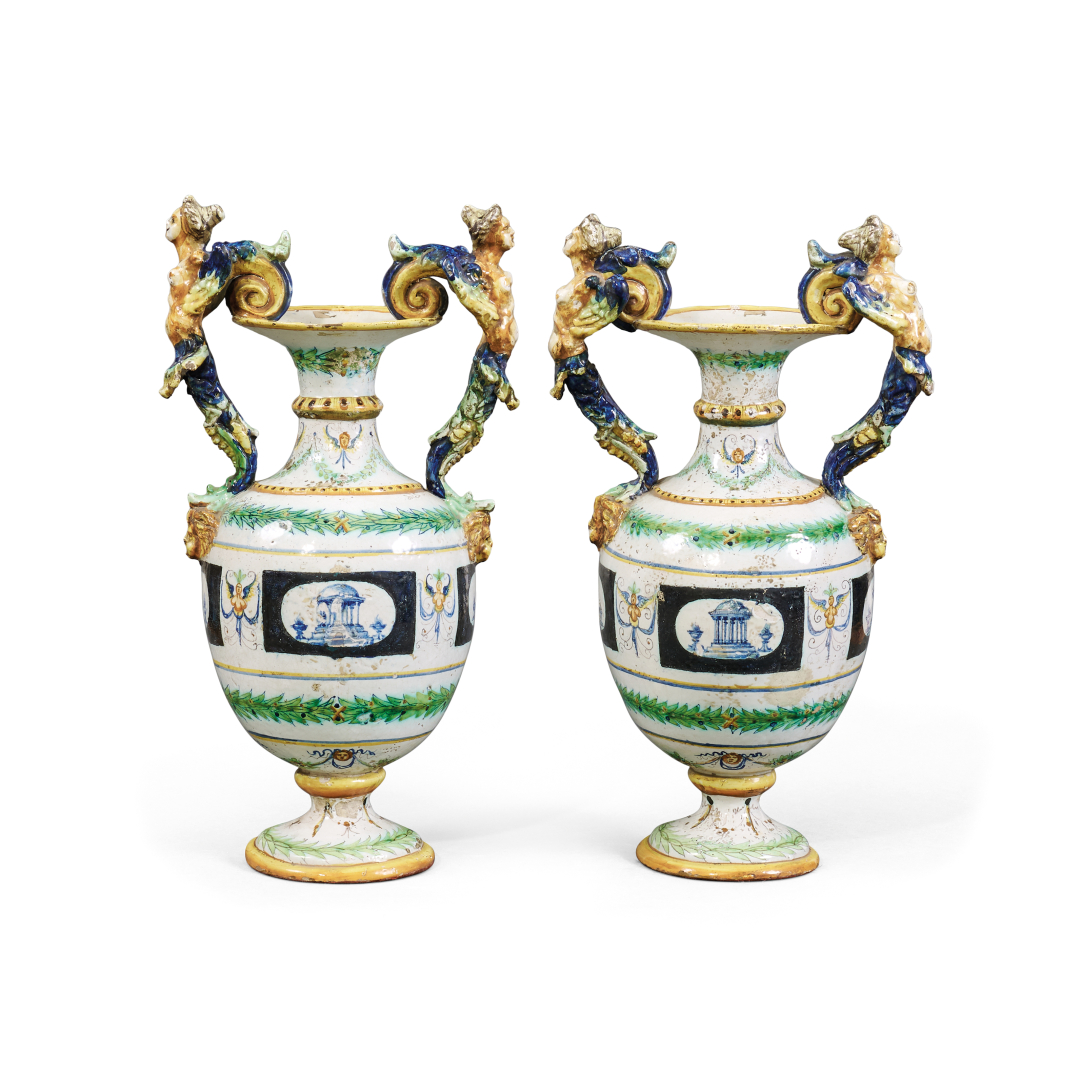 Polychrome majolica with neo-Renaissance motifs.
