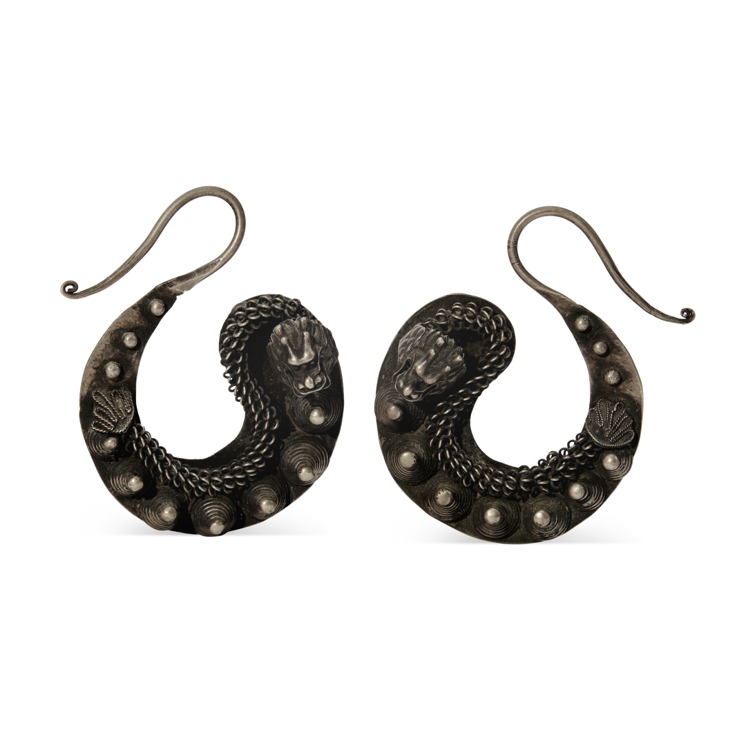 Pair of silver earrings China, Miao, 20th Century