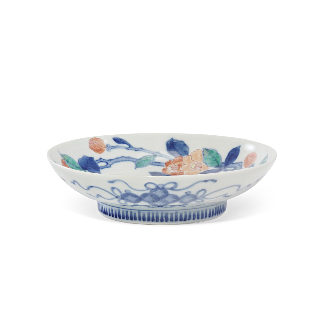 Nabeshima-type porcelain, the exposed surface with a flowering branch of camellias.