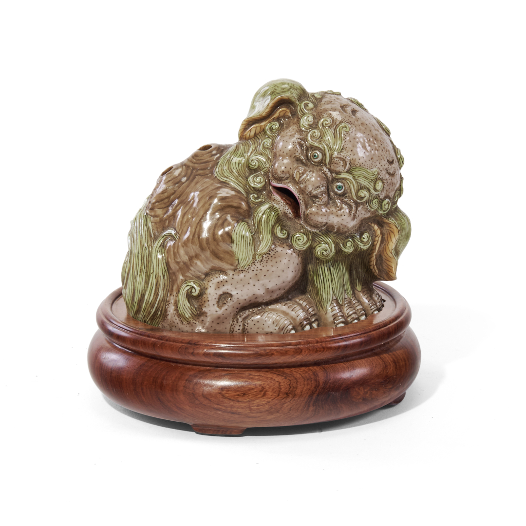 Porcelain with polychrome enamels decoration, on a wooden base.
