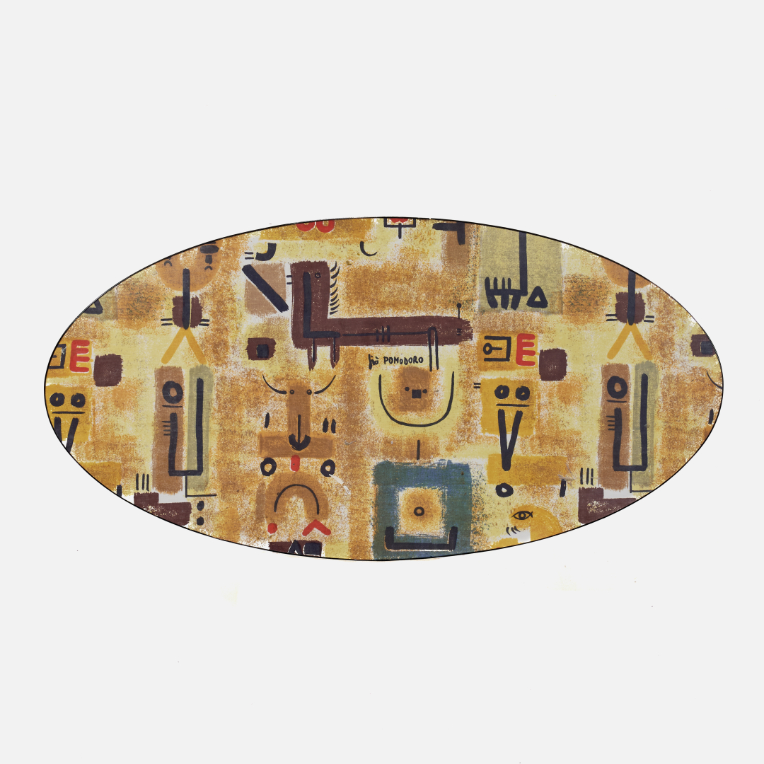 Painted metal, wood, laminated 'Tasmania' fabric designed by Gio Pomodoro for JSA, 1957