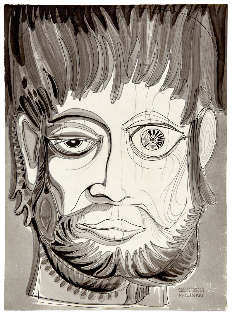 Together: Mario Molinari, autoritratto neoclassico, 1967, watercolor and ballpoint pen on,  paper, 18.90 x 12.99 in., signed, dated and titled lower right recto, on the reverse stamp Galleria Gian Ferrari, Milan.