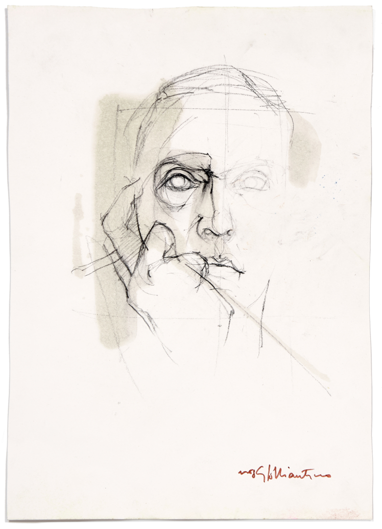 Together: Giacomo Soffiantino, self-portrait, pencil and charcoal on paper,12.80 x 9.06 in., signed lower right recto, on the reverse other drawing.
