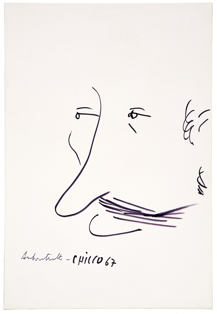 Lot completed by: Chicco, autoritratto, 1967, marker pen on paper, 19.68 x 12.80 in., signed, dated and titled lower left recto. (4)