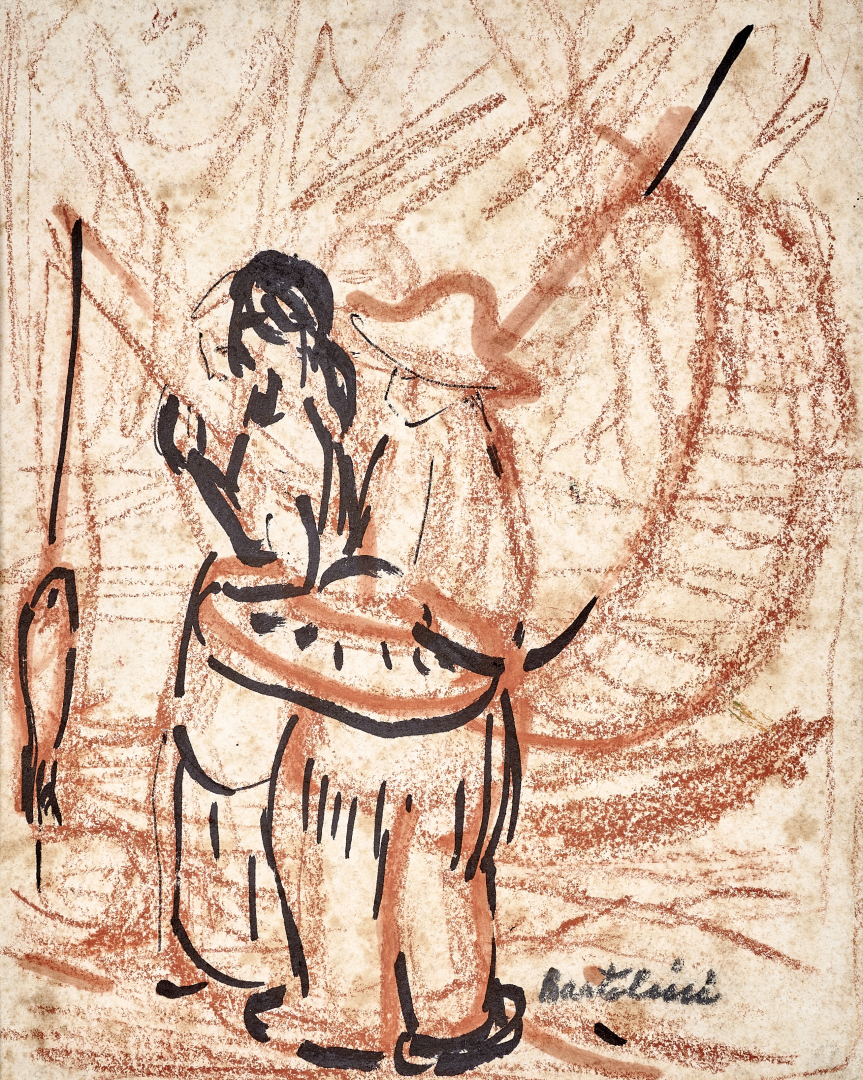 Sanguine and ink on paper.
