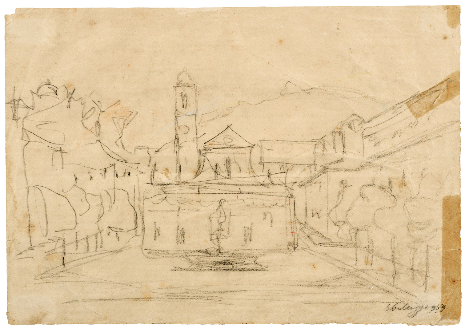 Lot completed by: Landscapes, 1954, pencil and charcoal on paper, 7.87 x 11.22 in., signed and dated lower left recto.(2)