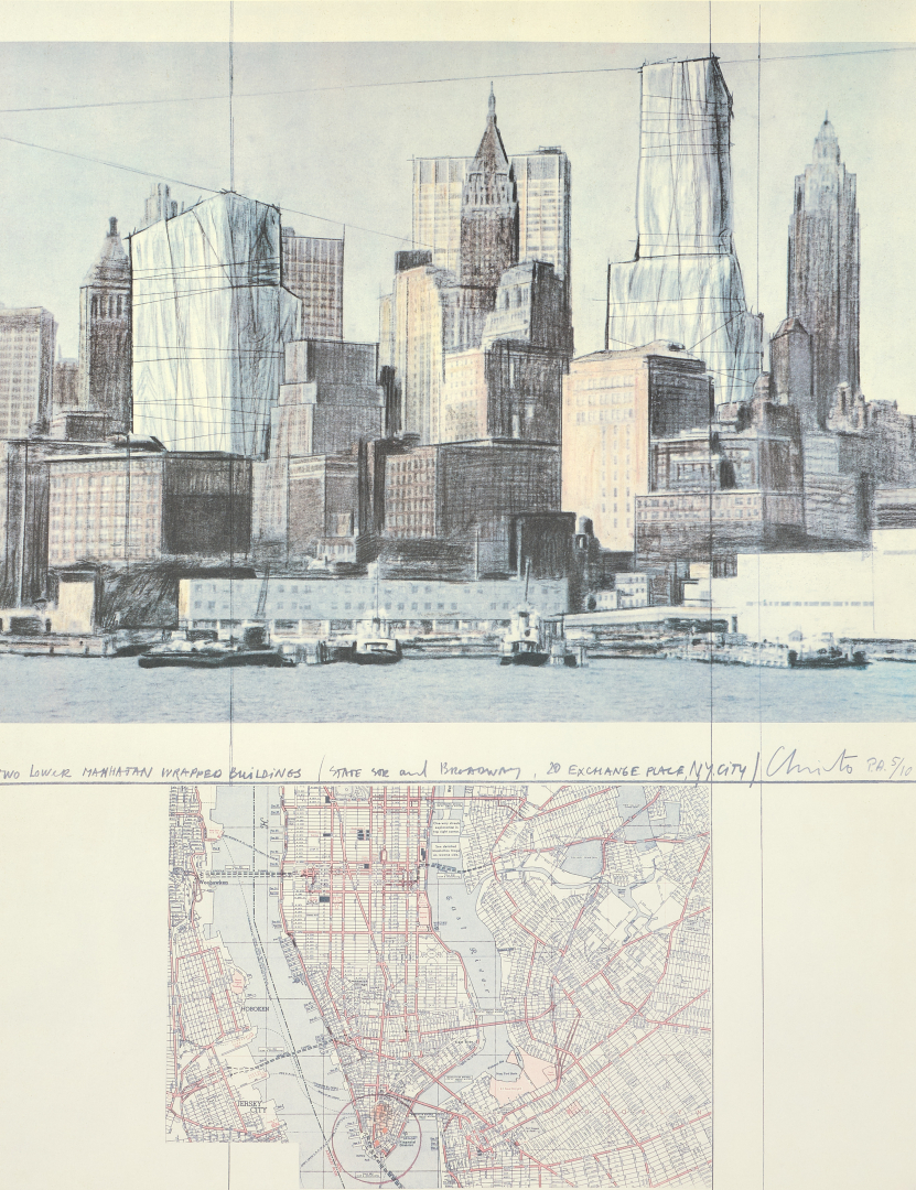Together: Two lower Manhattan wrapped buildings,offset printing, ed.P.A 5/10, 31.50 x 27.17 in., signature and edition printed lower recto.